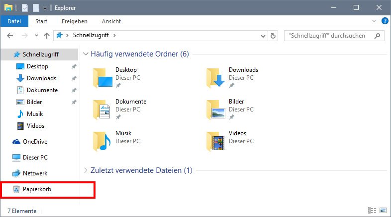 Quelle: Windows 10: Papierkorb im Explorer anzeigen – So geht’s – GIGA
